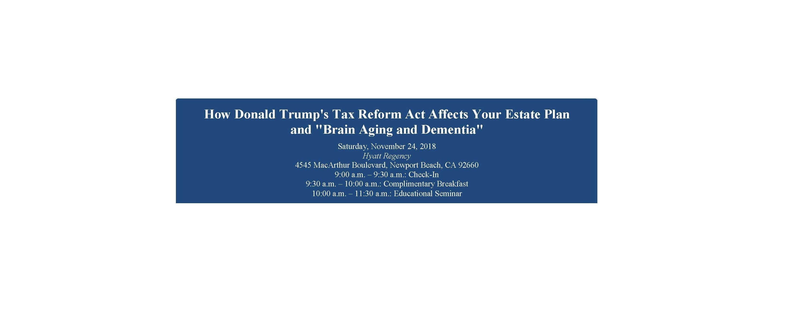 How Donald Trump’s Tax Reform Act Affects Your Estate Plan and “Brain Aging and Dementia” 07 Nov 2018W. Bailey Smith0Blog, Trust