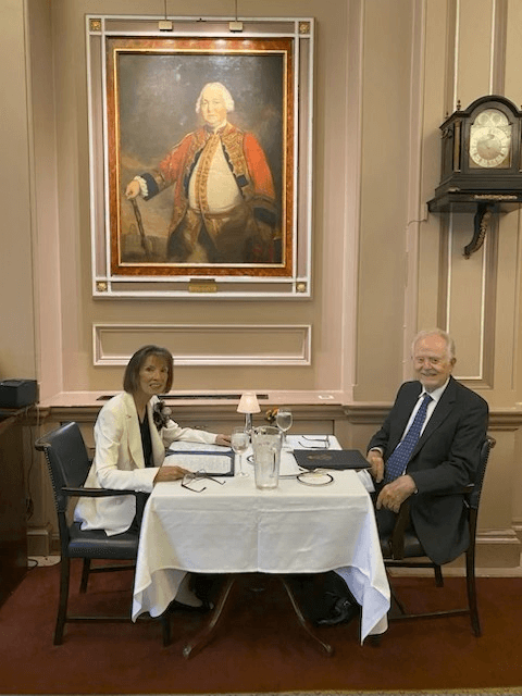 Dinner at the East India Club in London 23 Oct 2025W. Bailey SmithBlog0 Dinner at the East India Club in London with Lord Lansdowne in red, W. Bailey Smith (the Trust Dr) in blue, and Dee Rich in white.